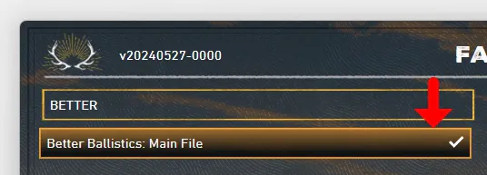 2. 모드 인스톨러 프로그램을 실행하시고 상단 검색 창에 better 검색 -> Better Ballistics: Main File선택 후 하단에 INSTALL 버튼을 눌러주세요.